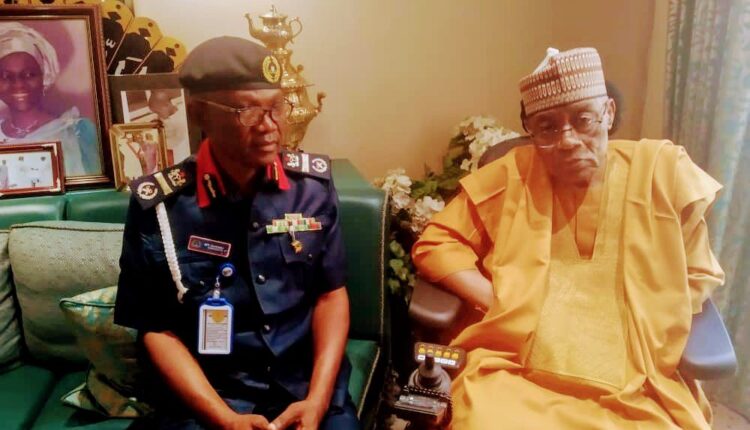 The Assistant Commandant General of the Nigeria Security and Civil Defence Corps (NSCDC) in charge of Zone 4, Shehu Magaji Tunga, has visited the former Military President, General Ibrahim Babangida (rtd) at his hill-top residence in Minna, Niger State.