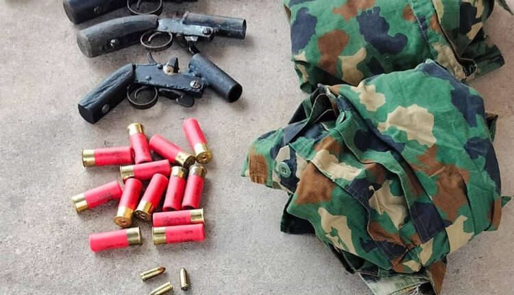 “During the raid, a fabricated semi-automatic Beretta pistol with four rounds of live ammunition, four locally made cut-to-size guns, 13 rounds of live cartridges, and a pair of military uniforms concealed in a black polythene bag were recovered,” the police spokesman affirmed.